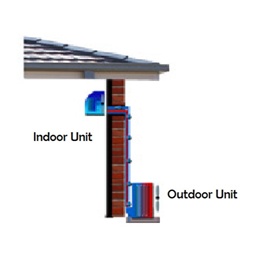 The Standard BACK TO BACK INSTALLATION refers to a split system that has two major components a wall mounted indoor unit with refrigeration pipes that run through the wall and straight down to the condenser unit positioned directly below hence the name Back to Back. Your installation may be a standard Back to Back or you may need extra piping so the unit is installed in your preferred location. Below is an example of a back to back install.